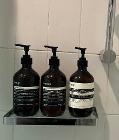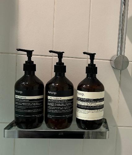 バスタオル、ハンドタオル、バスマット、Aesop(イソップのシャンプー、コンディショナー、シャワージェル、ハンドソープ)、トイレットペーパー、ウォータープルーフ用アイメイク落とし(ラロッシュポゼ)、メイク落とし(アヴェンヌ)、洗たく用液体洗剤も無料で用意しています。
