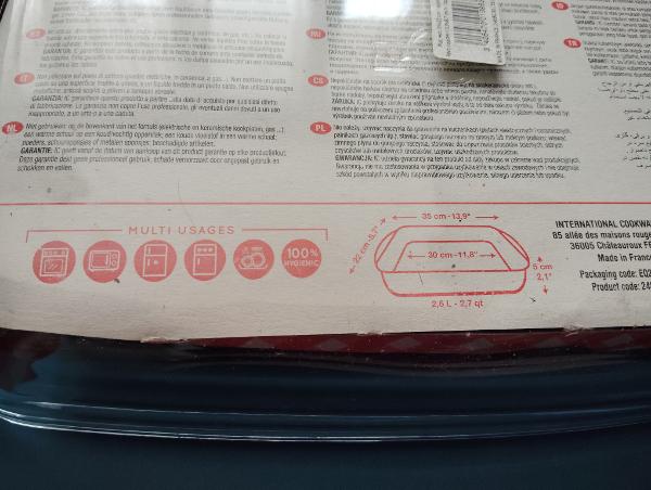 全て未使用の新品です。1つ5€でお譲りいたします。①耐熱ガラスのオーブン皿35cm×22cm×5cm 2.6L②テフロン加工のオーブン皿2つ29cm×21cm×6.5cm③テフロン加工のオーブン皿2つ27cm×19.5cm×6.5cmパリ市内でお引渡しになります。