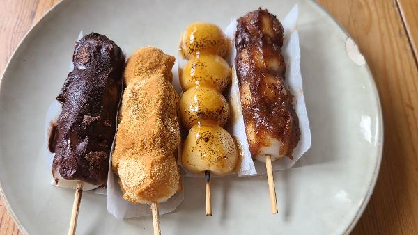 ②おだんご 4 種( 4 本お持ち帰り。試食もできます)