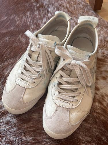 オニツカは普段24.5㎝の方がハーフサイズアップで履いたりしますので24.5〜25.0、多少伸びているかと思いますから細身25.5くらいまでなら大丈夫かも。