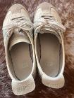 よく履きましたので、インディゴデニムの色移りやレザーのしわ、型崩れ、左足かかと部分にダメージあり。