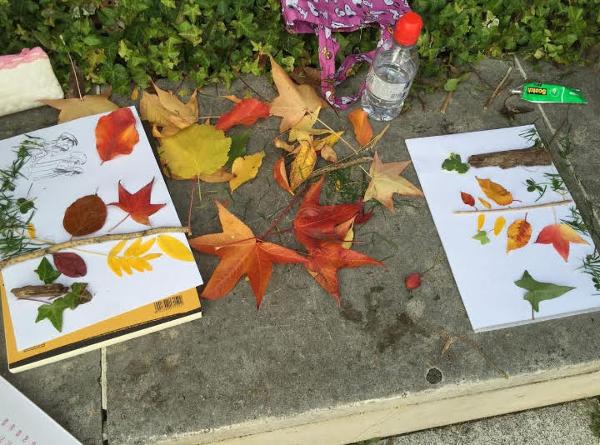 公園を散策し落ち葉や小枝、木の実などをみつけて、自分だけの秋の作品を作ってみましょう。