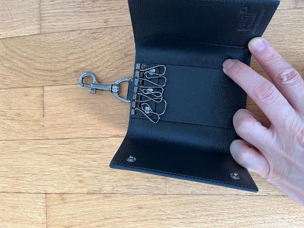 新品。5年前に購入したまま未使用。旧モデルですが、鍵のほか、お札も入り、スリ防止のフック付き。
