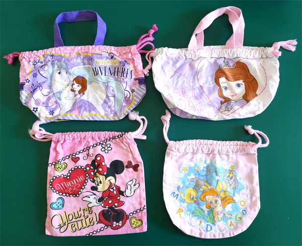5€以上お買い上げの方でご希望の方に、お好きなポシェット&お弁当箱入れ(最後の写真)またはキティちゃんの幼児用エプロン(園児サイズ)を差し上げます。