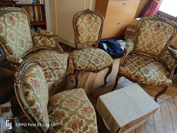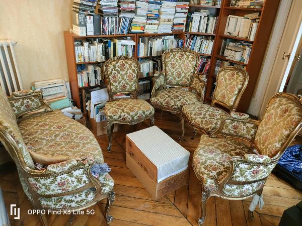 第二帝政様式サロン一式、fauteuils二脚、chaises二脚、canapé一つ。2000ユーロ、ねだんはもちろんご相談に応じます。