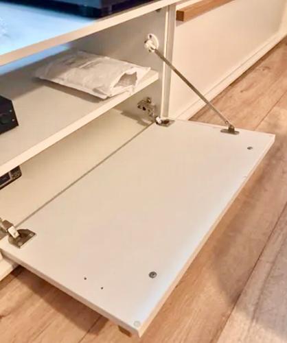 左の一枠に2段の引き出し、中2枠は棚1段(写真参照、DVDプレーヤーやテレビのBOXを入れられます)、右の一枠は棚なしです。