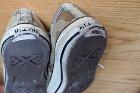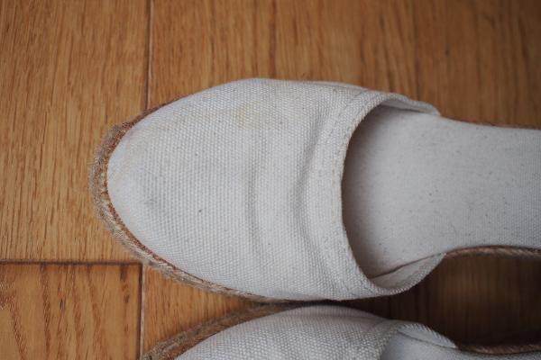 ※左のつま先が水で濡れた際にシミができました。全体にところどころうす汚れがあります。