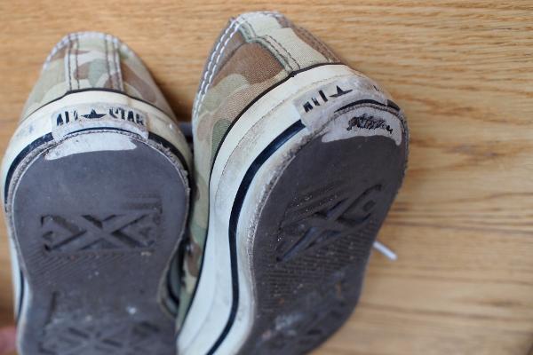 つま先はわざと黄ばんでテカったビンテージ風の加工がなされたモデルです。中敷きも普通のコンバースよりもクッション性の高い仕様のものです。