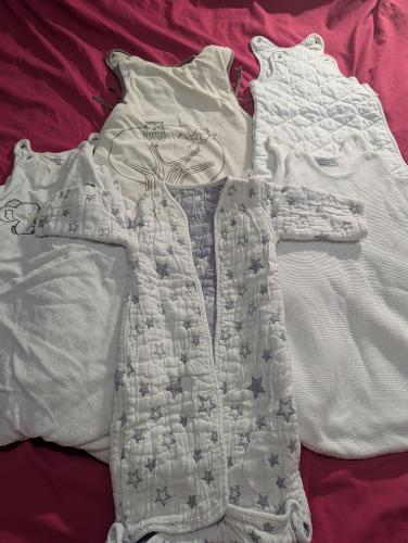 8,スリーパーセット。写真にない夏用もお付けします。新生児から2歳くらいまで使用できると思います。7€