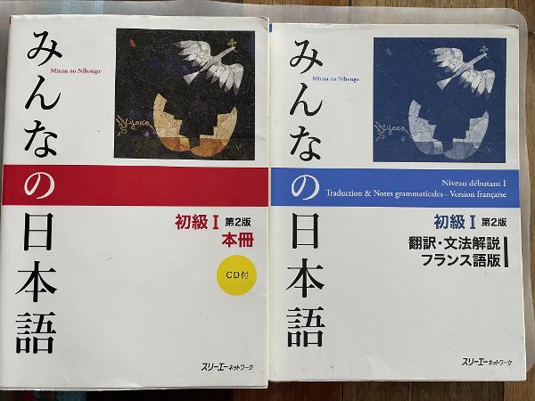 みんなの日本語の本冊(CD付)および翻訳・文法解説(フランス語版)、いずれも初級1レベル(第2版)をお売りします。
