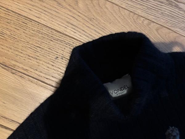 30歳くらいまでの学生の方のみとさせていただきます。Vondelのウールカシミア混の厚手黒ニット、厚手でとても温かいです。日本ではワンサイズ展開、フランスサイズの36くらいです。総丈61cm + ネック部分7cm使用感ありますので気にならない方。サンラザール駅からJ線で10分 + 徒歩13分程の拙宅まで取りに来てくださる方。主に平日夜18時以降か土日祝日が可能です。下記アドレスにご連絡くださいませ。antibes227@yahoo.co.jp