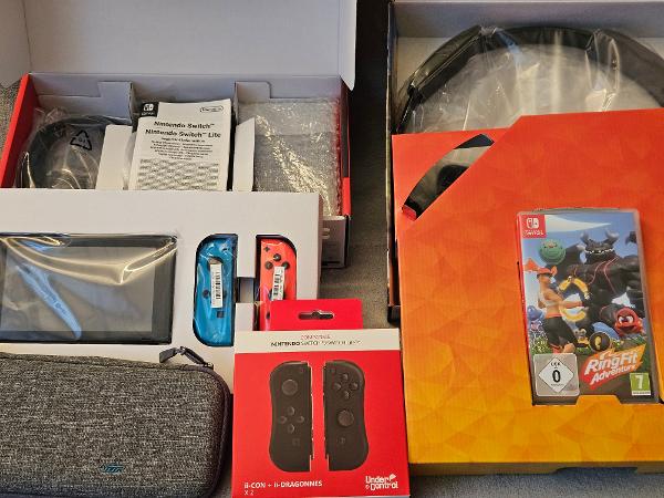 Nintendo Switch ・Nintendo:Switch 本体・Nintendo:リングフィットアドベンチャー (ゲー厶+リングコン)・Undercontrol:Joy-con (ペア・黒)・VUP:Switchケース付属品の欠け等ございません。写真にあるもの全てセットで180€で買い取っていただきたいです。気になる方は受け渡し時に、動作確認や汚れ等のチェックをしていただいても構いません。受け渡しは19区でお願いいたします。お支払いは、現金またはPayPal