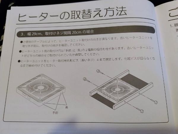 ※ヒーターをテーブルにつける簡単なDIYが必要です。
