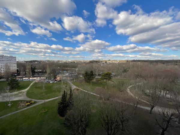 マルヌ川沿いの団地の7階で公園に面した北側の窓からは公園とマルヌ川ヴァンセンヌの森、居室の南側窓からはメゾンアルフォ-トの街並みがみえるとても気持ちのいい部屋です。