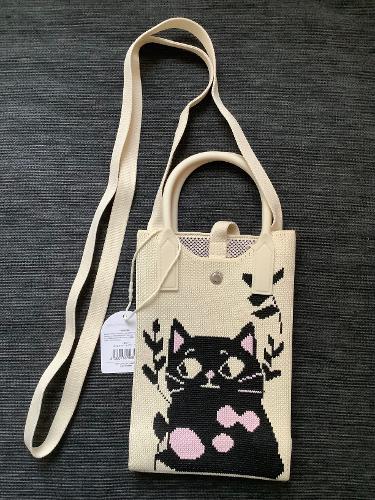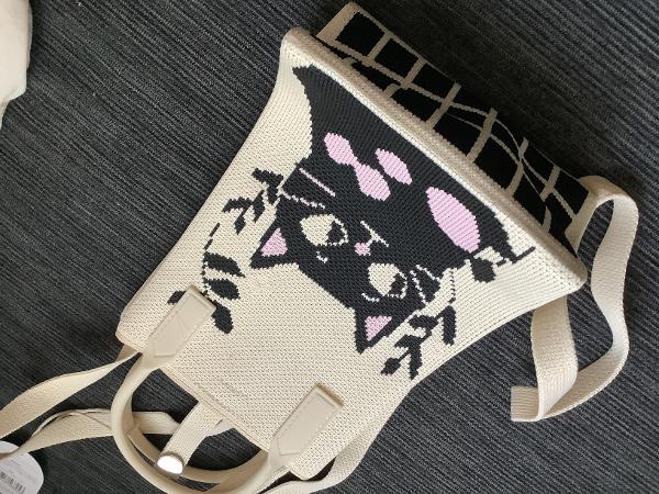 新品猫柄ニットポーチを10ユーロでお譲りします。持ち手を含まないサイズ約19 cm x 12,5 cm x 6 cm