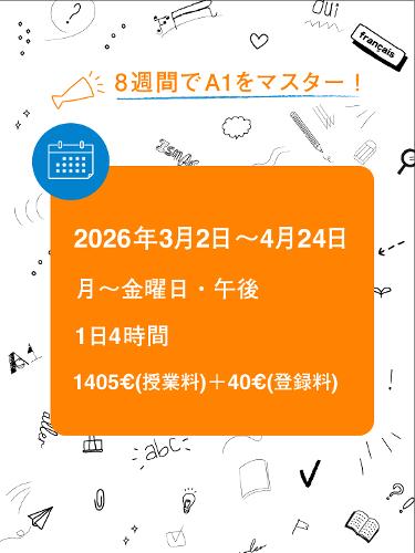 パリ12区と13区にキャンパスを構えるフランス語学校 ISMAC(イスマック) では、2026年3月2日より A1集中講座 を開講いたします。ご興味のある方は、お早めにお問い合わせください。