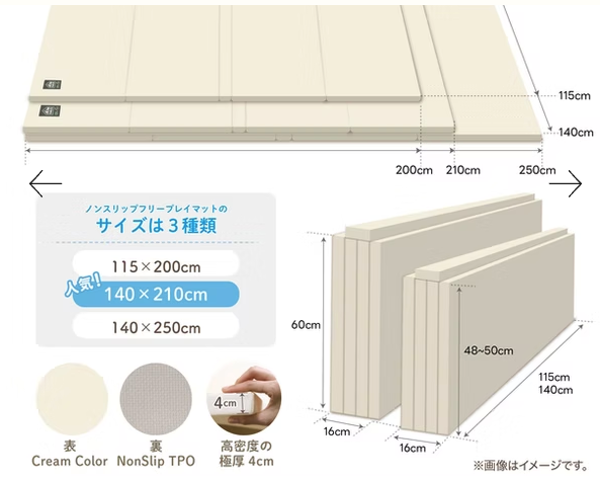 Plié : 65 x 140 x 16 cm (畳んだときのサイズ)