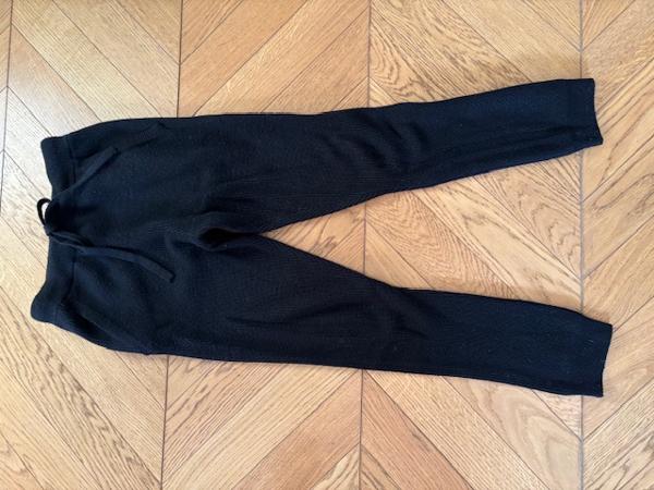 フランスサイズ36くらい、お尻周りがだぼだぼしているので、オーバーサイズのトップスを合わせて隠すか、家着や近所着にいいと思います。ウエストに同素材の紐が付いています。