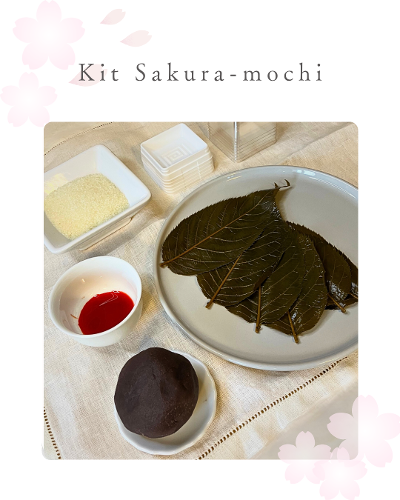 和菓子を作り、茶道家の抹茶と共に味わい、ご自宅でも楽しめる和菓子キット(桜餅6個分が作れる)をお持ち帰りいただけるアトリエです。