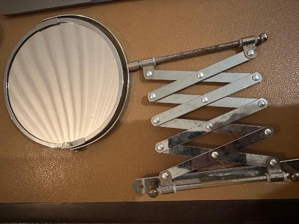 浴室や鏡台における折りたたみ式鏡、2面式1倍と2倍。多少さびがあるため3ユーロで提供します。
