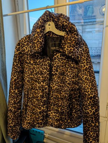 こんにちは。ヒョウ柄ダウンMサイズ(Lサイズ記載ですがMに近いです。)を格安でお譲りします。ジップアップ ポケット付き(ジップ付き)ハイネックタイプハイネックの部分に形を変更できるゴムが付いているので好きな形に変更できます。軽くて暖かいです。殆ど使用していないので見た目も綺麗です。試着してからの購入可能です。宜しくお願いします。pariscoco8181@gmail.com