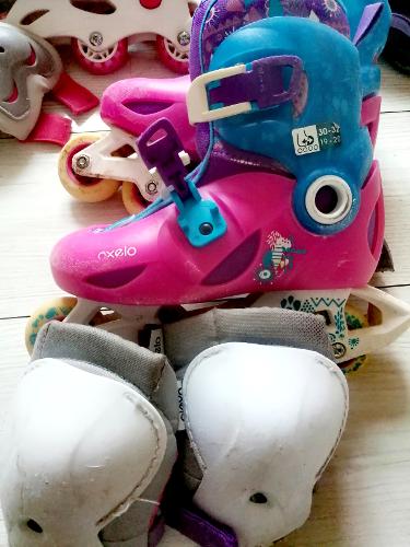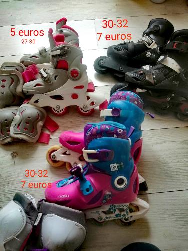 ローラー① サイズ27-30 おまけで膝あて、肘あて 5ユーロローラー② サイズ30-32 oxelo 青ピンク おまけで膝あて 7ユーロローラー③ サイズ30-32 oxelo 黒 7ユーロ明日 18日 土曜日 シャトレ 13h30-14h30くらいで 受け渡しお願いします。