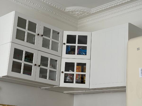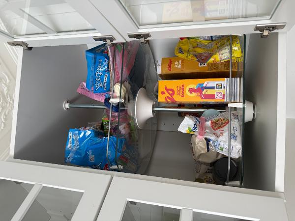 これはIKEAのキッチン用収納家具で、角に設置できるタイプ(コーナー用キャビネット)です。とても整理しやすく使い勝手が良いです。約1年前に購入しましたが、現在リフォーム中のため不要になりました。購入価格は460ユーロでした。