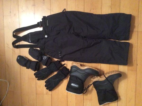 防寒靴 サイズ32 5ユーロズボン6歳用 5ユーロ手袋各2ユーロ靴とズボンを一緒にご購入頂ける方には手袋プレゼントします。どれも1週間ほどしか使用していないので美品です。パリ11区の自宅にて、木曜の夜まで受け取り可能です。grisneko@free.frまでお気軽にお問い合わせください。