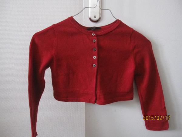 4/ カーディガン Jaccadi,丈短、落ち着いた赤色 >>> 5ユーロ